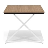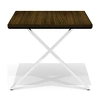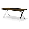 - Базовые элементы металлических каркасов столов и брифинг-приставки — Х-образные опоры, выполненные из полированной до зеркального блеска нержавеющей трубы прямоугольного сечения 80х20 мм и дополненные парой металлических траверсов из трубы 30х30 мм с черным матовым полимерным покрытием.